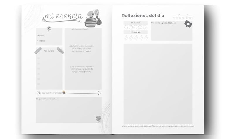 📘 Libretas Descargables: Explora las libretas descargables diseñadas para ayudarte en tu jornada de reflexión y autoexploración. Estas herramientas están creadas para fomentar tu autoconciencia, el seguimiento de tus objetivos personales y la gestión emocional.